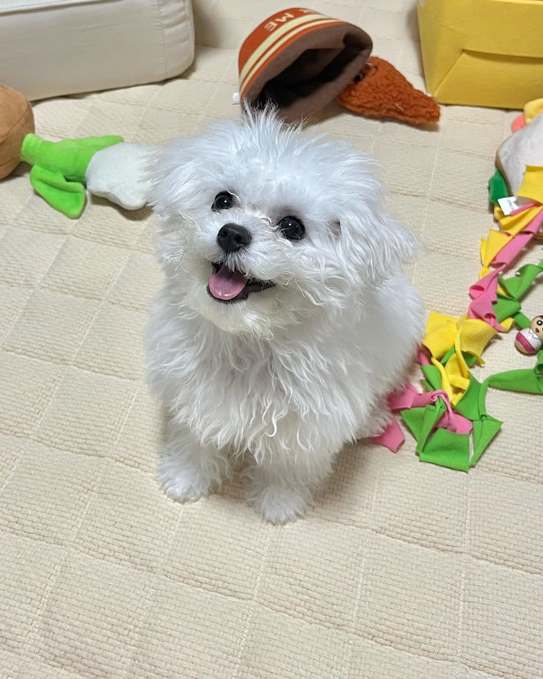 At Bichon Frise Creek, we want your experience to be nothing short of wonderful. When you welcome Omochi home, she arrives fully prepared for an easy, happy transition. She comes with a cozy puppy bed, a 1-year health guarantee, and a licensed vet health certificate with complete medical records. Omochi is also fully up-to-date on all her vaccinations.